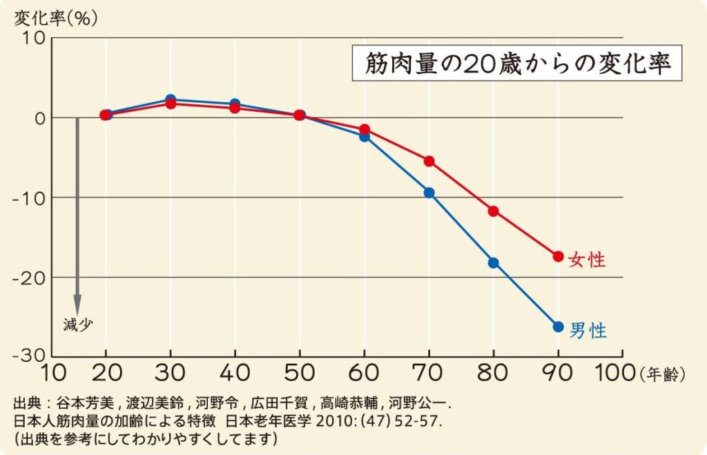 30代を過ぎると、筋肉は何もしないままでは1年に約1%ずつ減少していくといわれています。